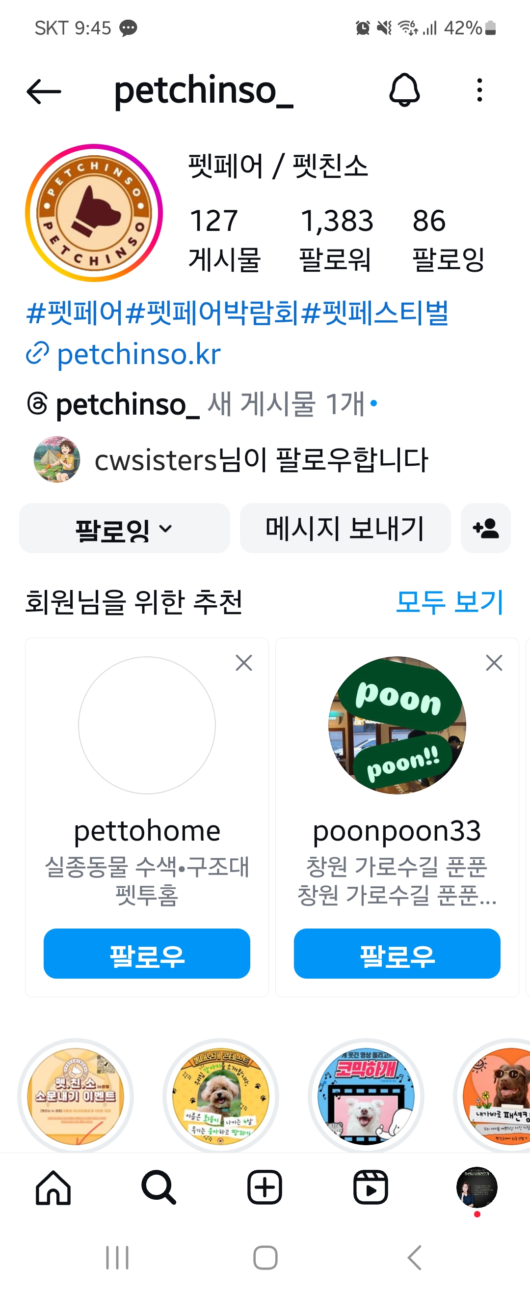 미션2. @petchinso_ 펫친소 인스타계정을 팔로우 한다!